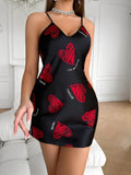 Crafted from smooth, silky satin fabric, this slip-style nightdress features delicate spaghetti straps and an all-over red heart print with romantic lettering. The soft, lightweight feel gently drapes over the body, highlighting your curves while keeping you comfortable all night long.