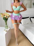 With its supportive lace bra, high-waisted lace and tulle skirt, and adjustable garter straps, this lingerie set is perfect for special moments or simply feeling confident and beautiful every day.